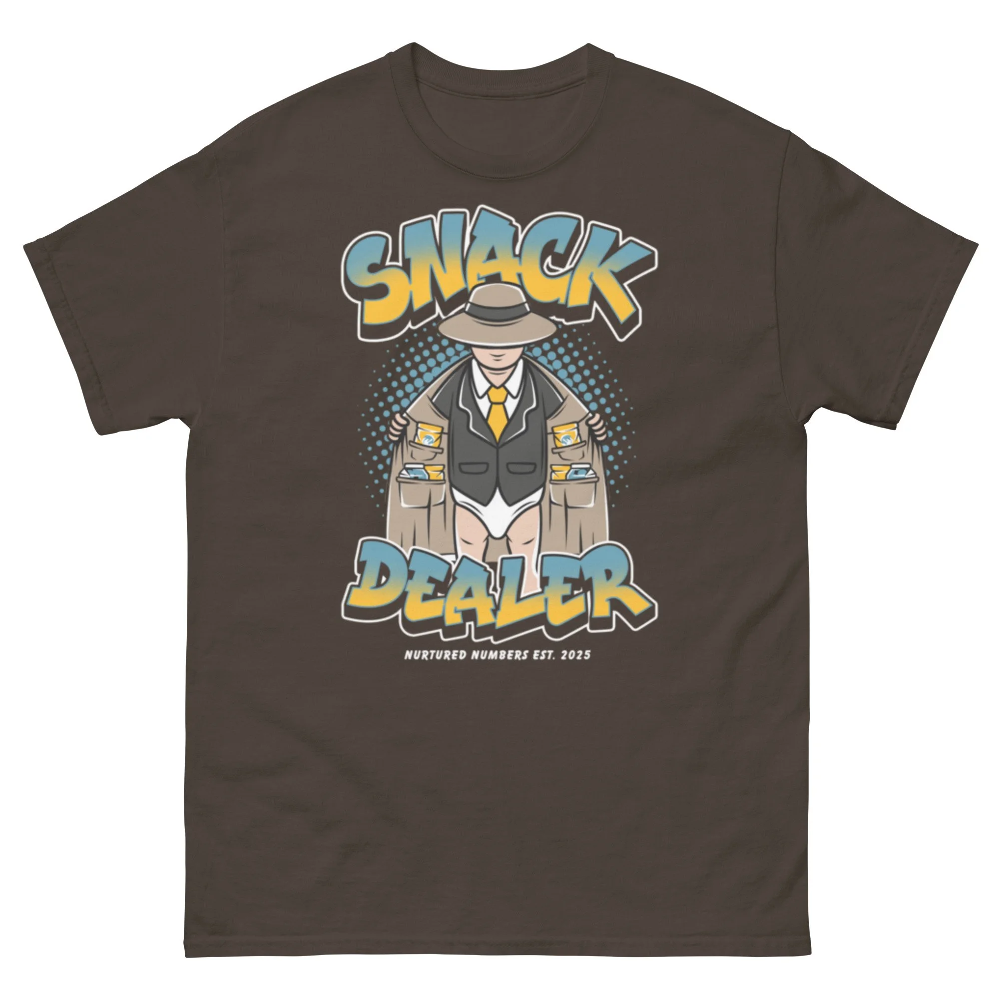 For the parent who’s always got a pouch, puffs, or goldfish on standby. The ‘Snack Dealer’ tee is your badge of honor for keeping the peace one snack at a time.